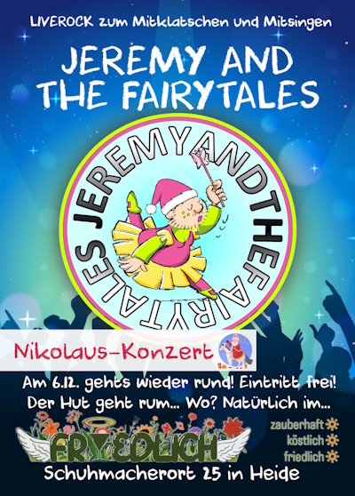 Wann könnt ihr wo "Jeremy and the fairytales" sehen und hören? Nächster Gig: Nikolaus 6.12. ab 20 Uhr im Friedlich in Heide, Schuhmacherort 25(ehemals Irish Pub)